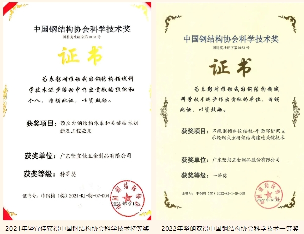 91视频福利视频及子公司相继荣获中国钢结构协会多项大奖: